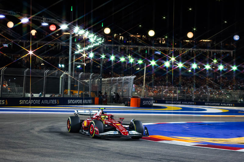 Both SF-25s were fitted with Medium tyres for the start. On the clean side of the track, Charles was able to get ahead of Lewis and Kimi Antonelli to move up to fifth on the opening lap.
